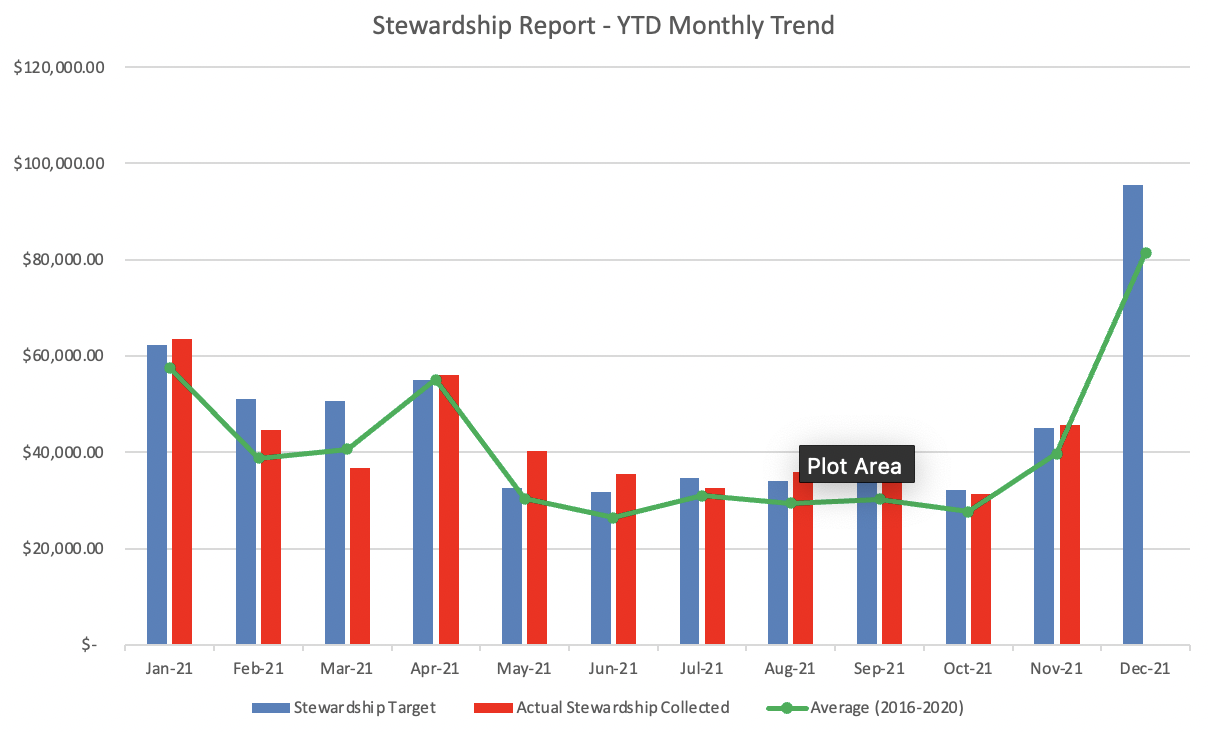 I have attached a couple of charts that illustrate we are only $10,546 off of our Stewardship target for 2021. Please take the time and use one of the payment methods below, and please consider donating what you would have spent at the Greek Festival last May so we can balance the books.
